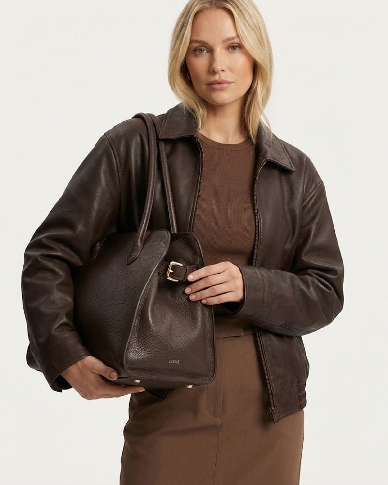 Designed as a spacious everyday city bag, Vira combines Italian leather, durable structure, and a secure zipper for privacy.